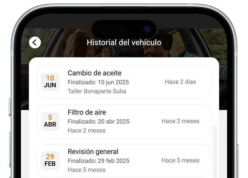 Desde la app podrás consultar el historial de servicios de tu vehículo en nuestros talleres especializados en pocos clics.
